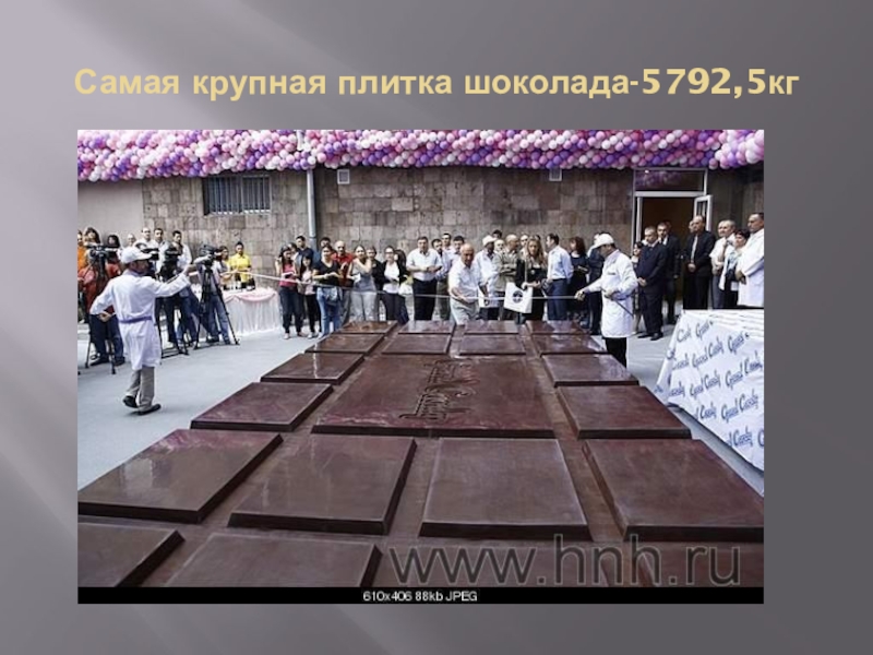 Слайд 15Самая крупная плитка шоколада-5792,5кг