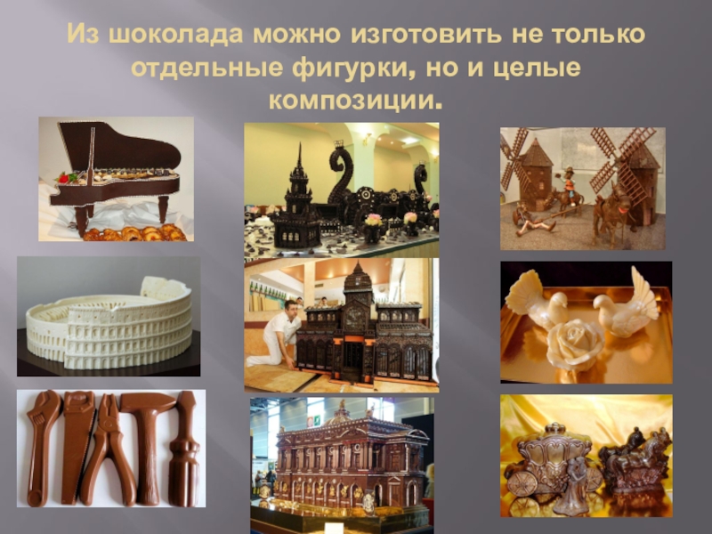 Слайд 14Из шоколада можно изготовить не только отдельные фигурки, но и целые