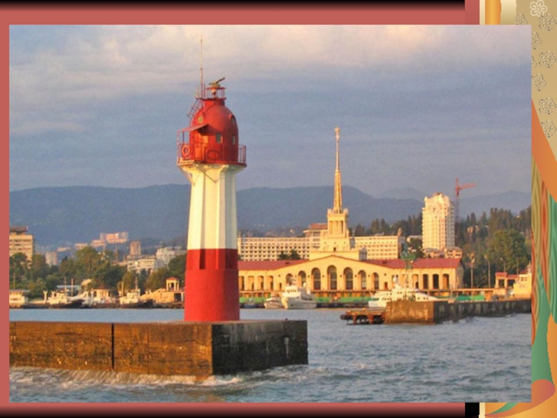 Слайд 5Город-курорт Сочи ограничен морем на длину 113 км береговой черты, с