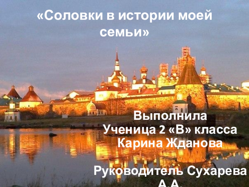 ССоло«Соловки в истории моей семьи»ВыполнилаУченица 2 «В» класса Карина ЖдановаРуководитель Сухарева А.А.
