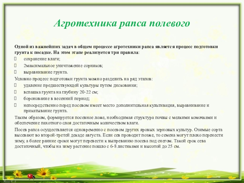 Слайд 7Агротехника рапса полевого