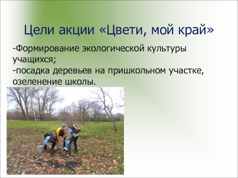 3. «Цвети, мой край» (участие в посадке деревьев, уборке территории возле школы)