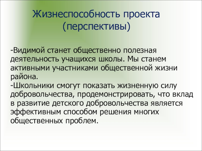 -Видимой станет общественно полезная деятельность учащихся школы. Мы станем