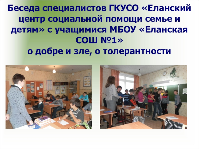 Слайд 16Беседа специалистов ГКУСО «Еланский центр социальной помощи семье и детям» с