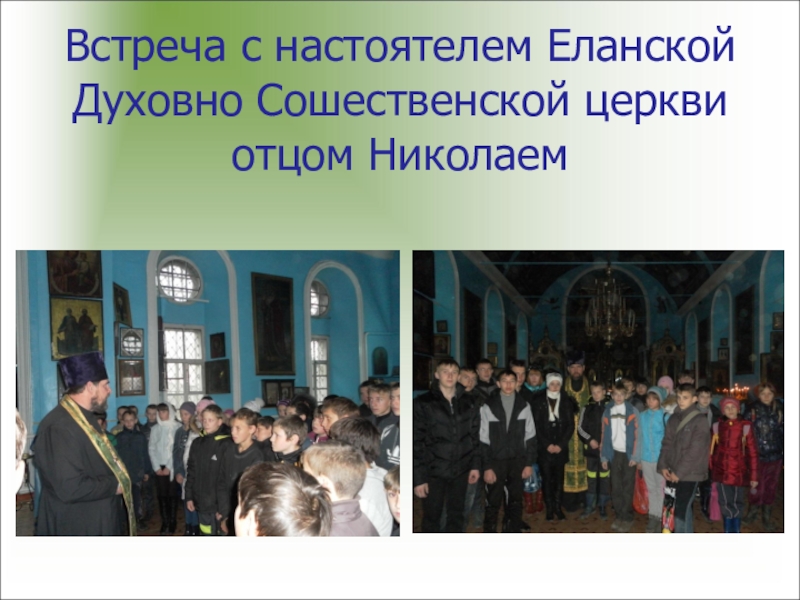 Слайд 17Встреча с настоятелем Еланской Духовно Сошественской церкви отцом Николаем