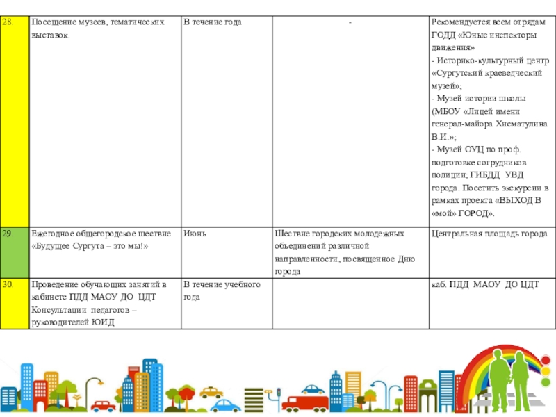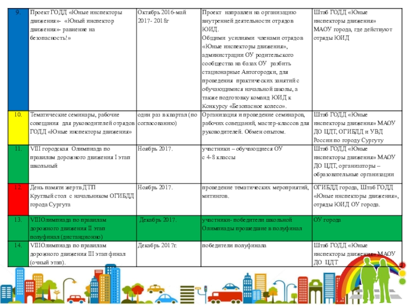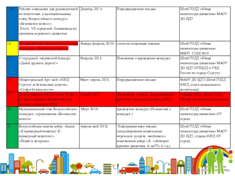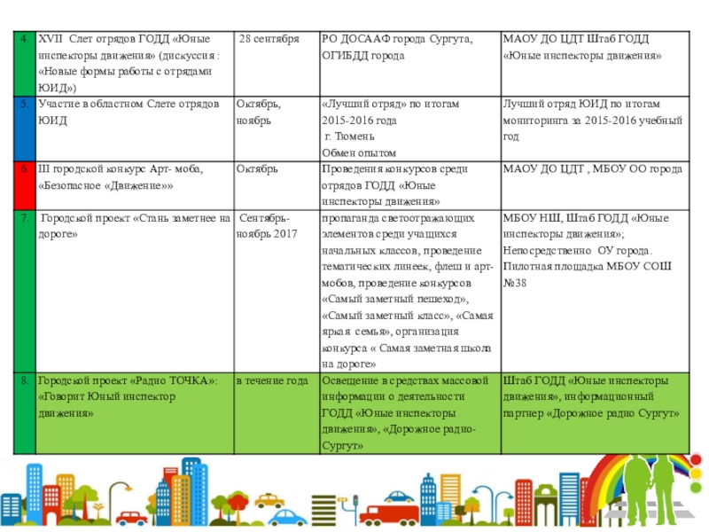 Организация и проведение круглых столов, слетов, совещаний, семинаров разработка и реализация проектов и других мероприятий для решения вопросов по профилактике дорожно- транспортного травматизма.