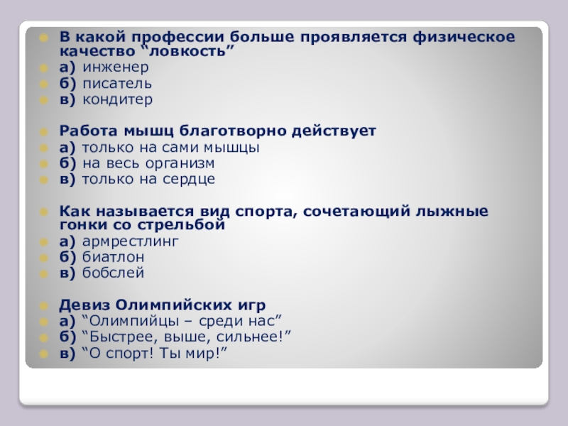 Слайд 31В какой профессии больше проявляется физическое качество “ловкость”
