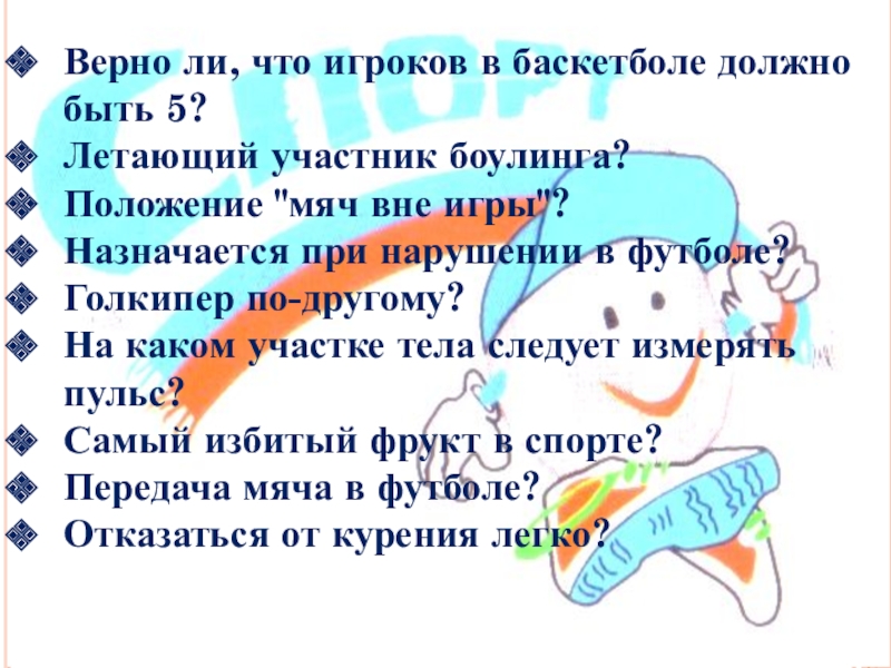 Слайд 23Верно ли, что игроков в баскетболе должно быть 5?