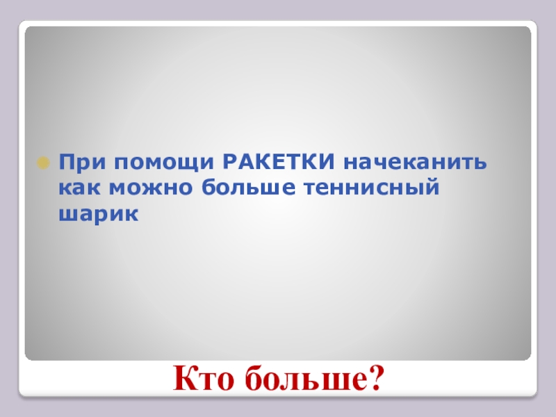 При помощи РАКЕТКИ начеканить как можно больше теннисный шарик