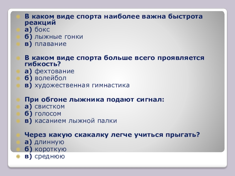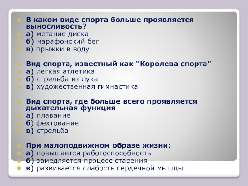 Слайд 33В каком виде спорта больше проявляется выносливость?
