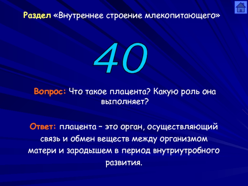 Ответ: плацента – это орган, осуществляющий связь и обмен веществ между организмом матери и зародышем в период внутриутробного развития.