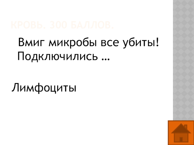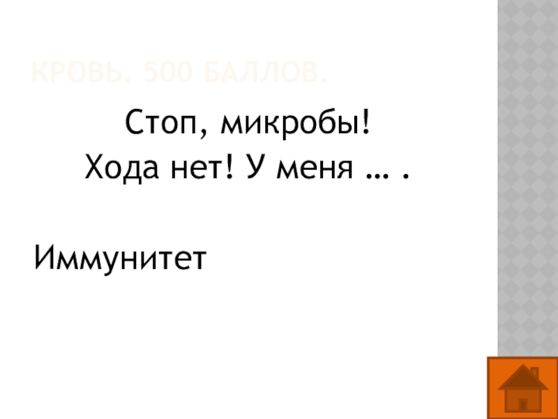 КРОВЬ. 500 БАЛЛОВ.Стоп, микробы! Хода нет! У меня … .Иммунитет