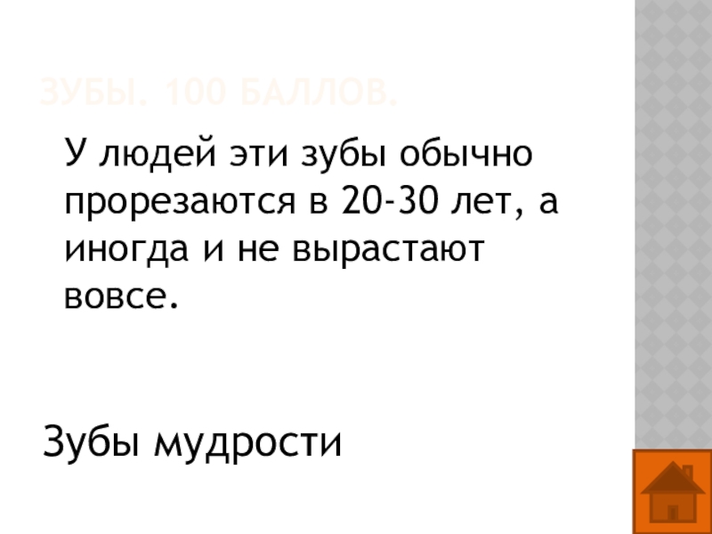Слайд 8ЗУБЫ. 100 БАЛЛОВ.