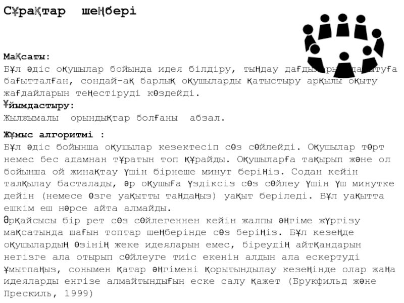 Мақсаты: Идеялар мен ойларды дамытудың құрылымдалған әдісі.