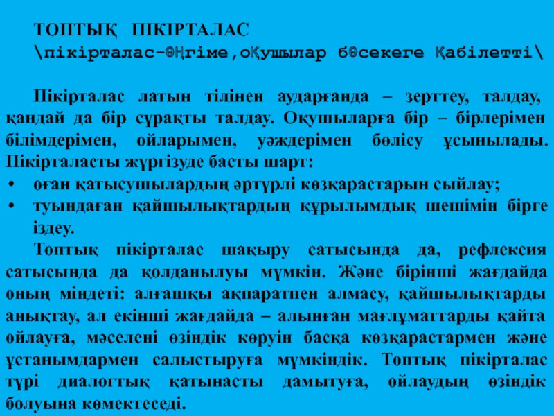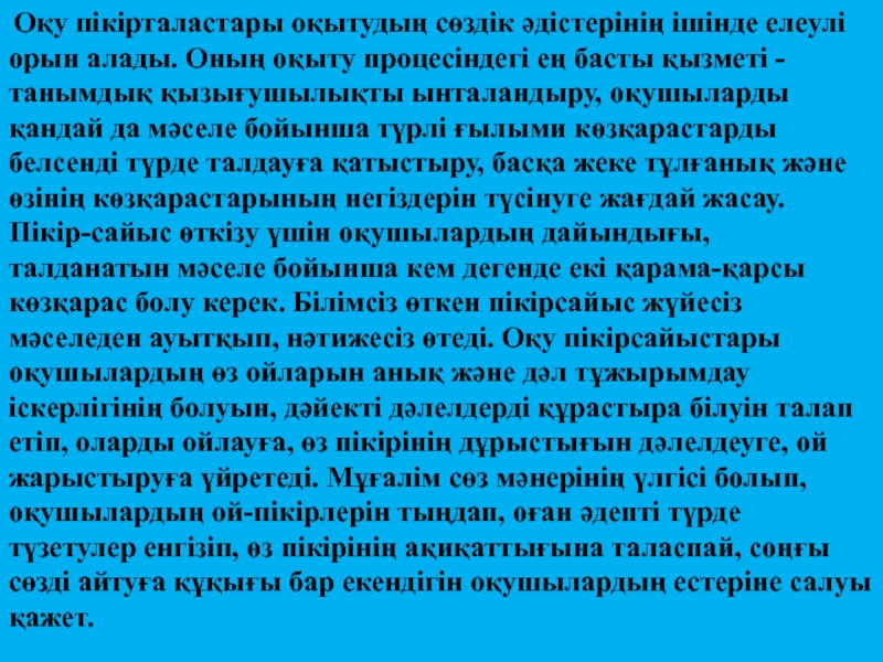 Оның бірі – диалог. Диалог негізінде оқыту