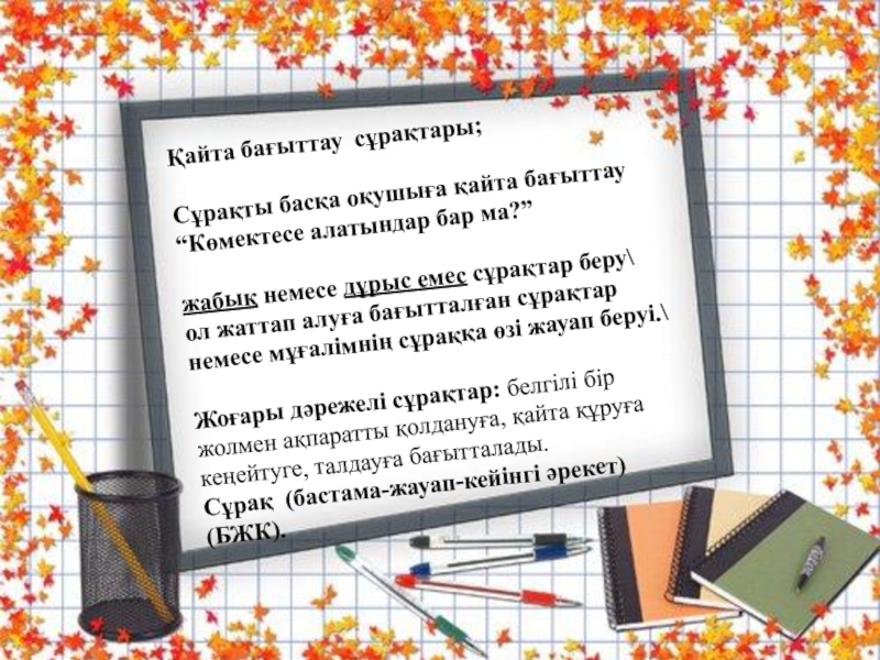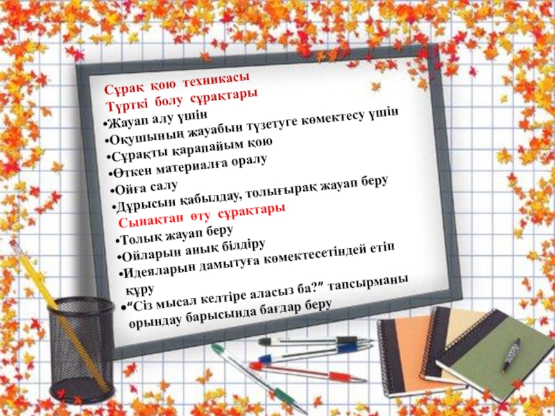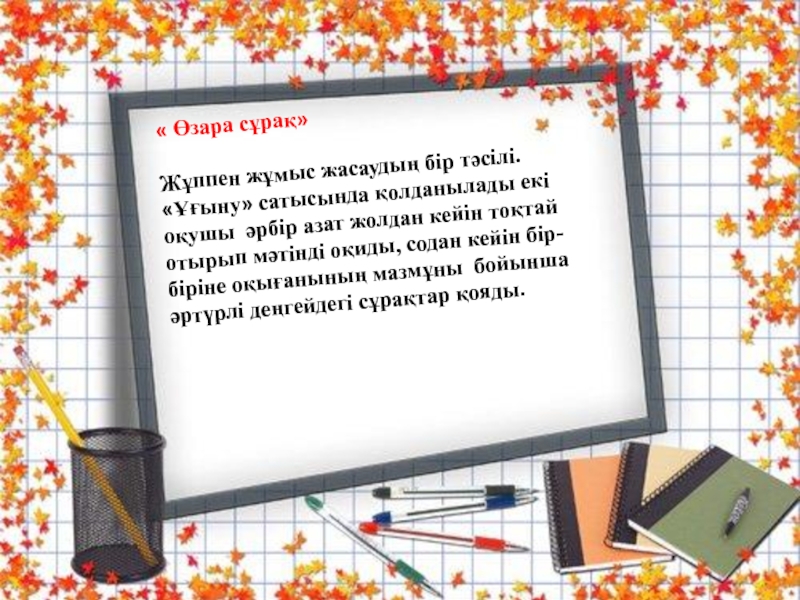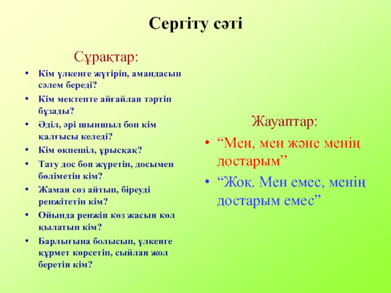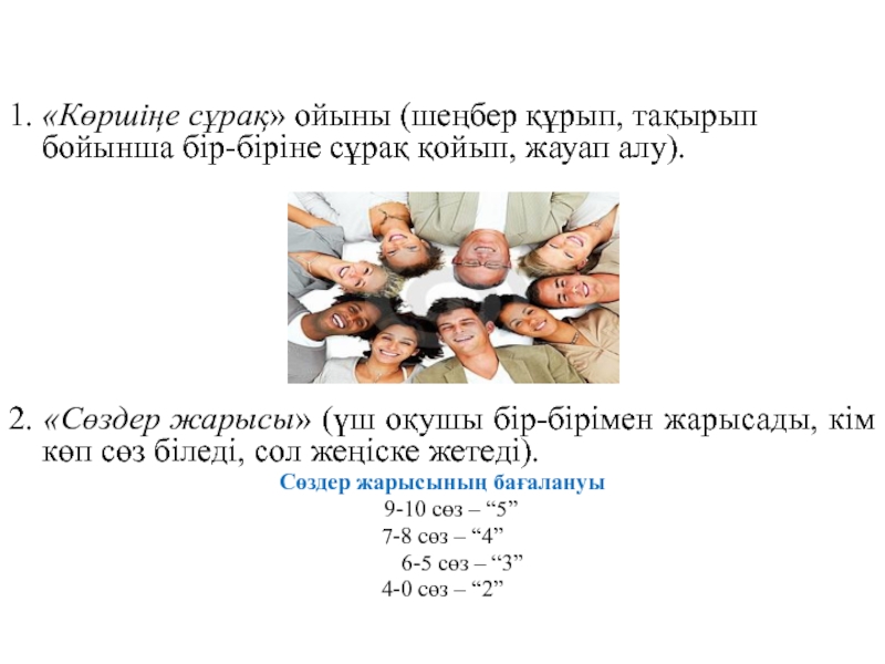 2. Барлығы карточкасын алған топтан барлық оқушыдан сұрайды.