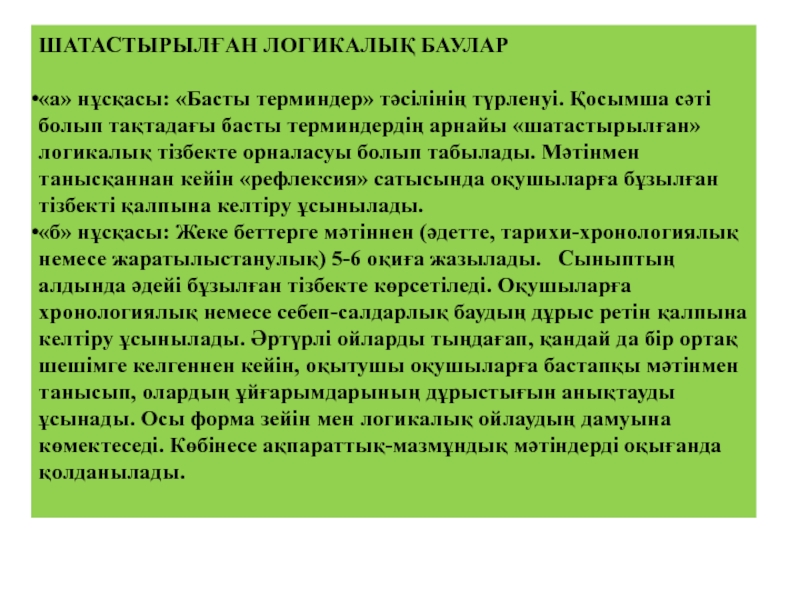 Сындарлы оқыту(ойлауды дамытуда бұрынғы алған білімдері астарласа қолданылады)теориясына,