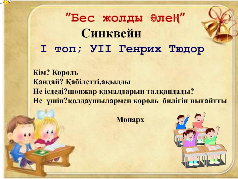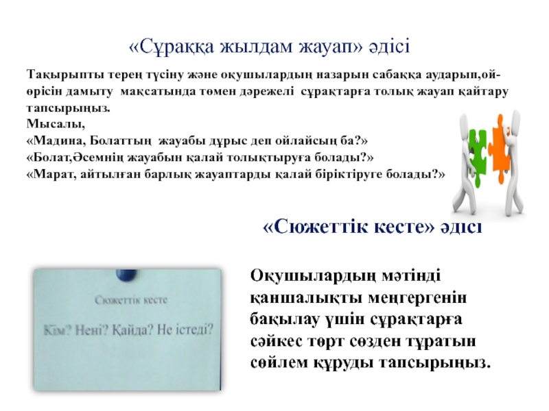 1. Сайлау карточкасын алған топтан мұғалім бір оқушыны өзі сайлап, сұрақ береді.