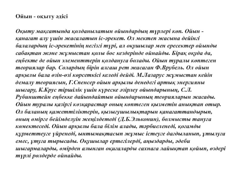 Оқыту мақсатында қолданылатын ойындардың түрлері көп. Ойын -