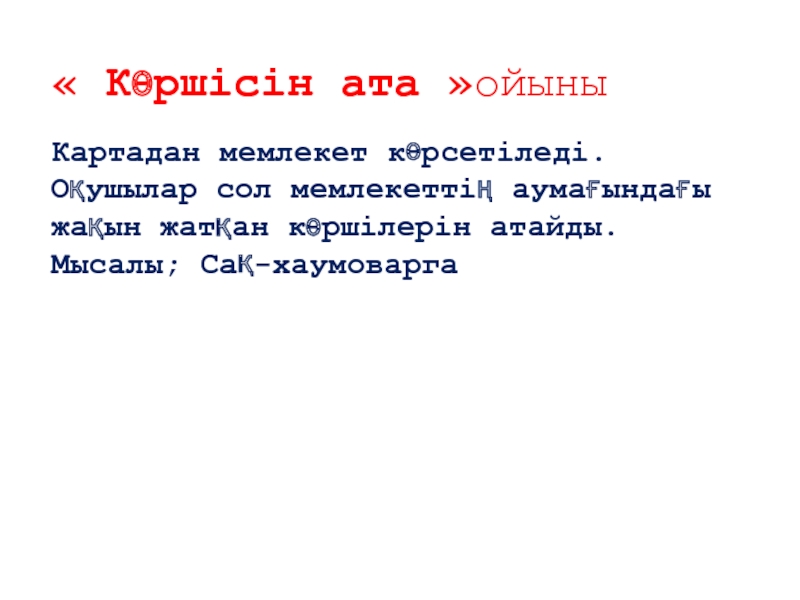 Слайд 87« Көршісін ата »ойыны