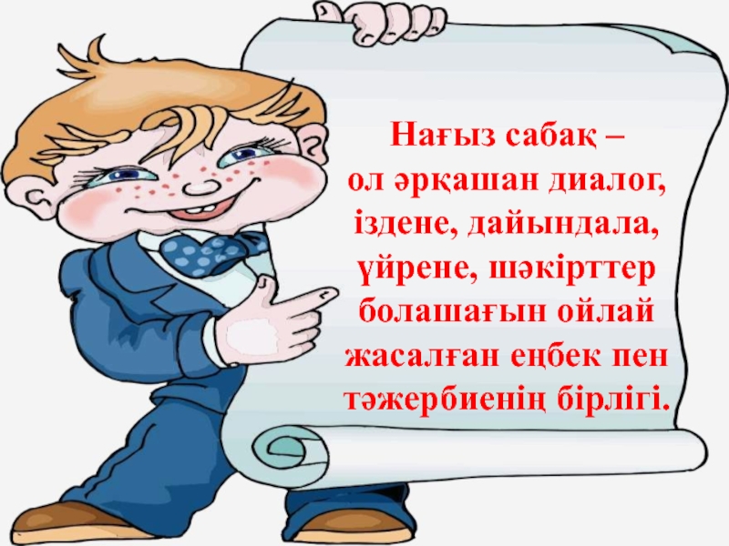 ол әрқашан диалог, іздене, дайындала, үйрене, шәкірттер болашағын ойлай жасалған еңбек пен тәжербиенің бірлігі.