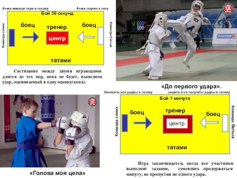 Состязание между двумя играющими длится до тех пор, пока не будет, выполнен удар, оцениваемый в одну оценку(кока).