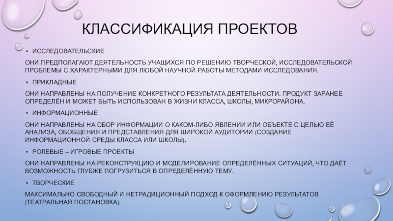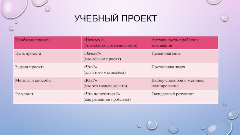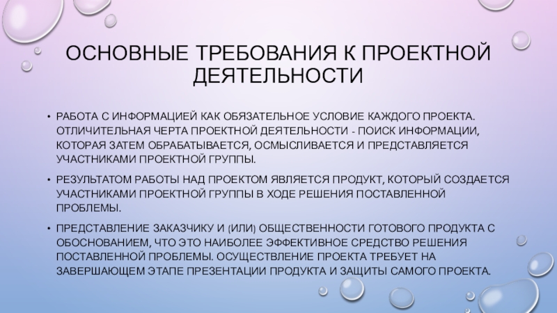 проекта. Отличительная черта проектной деятельности - поиск информации, которая затем обрабатывается, осмысливается и представляется участниками проектной группы.