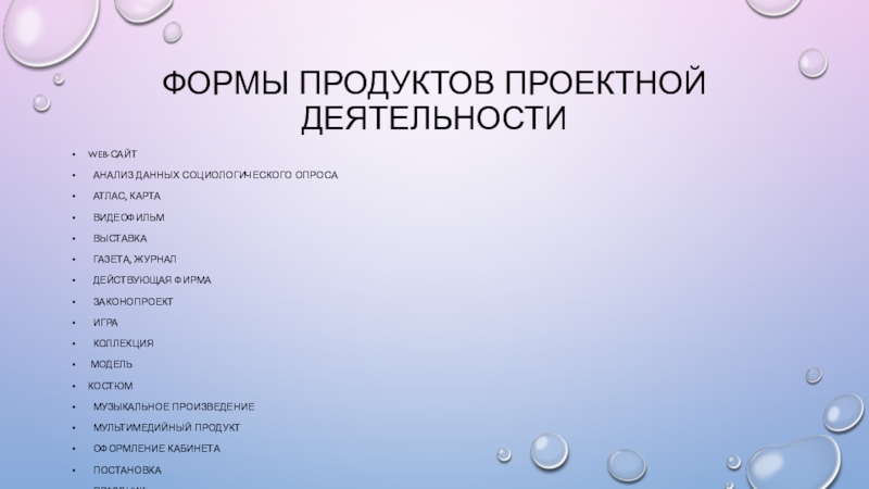 Результатом работы над проектом является продукт, который создается участниками проектной группы в ходе решения поставленной проблемы.