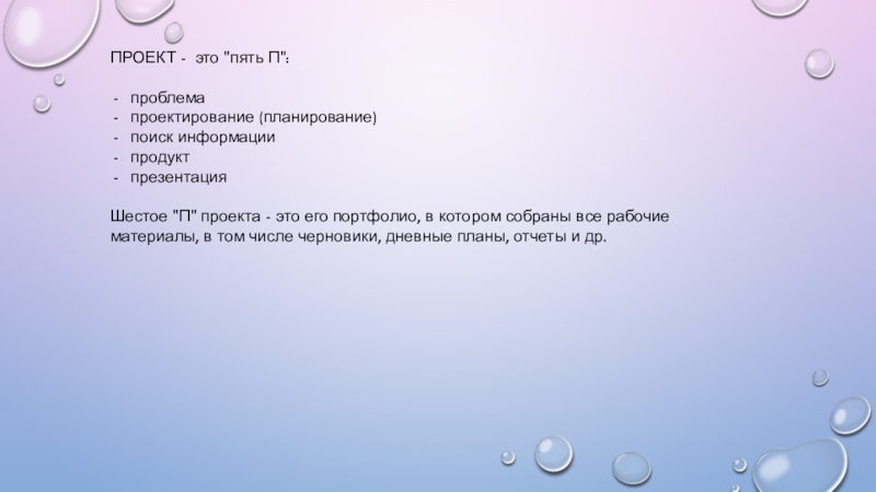 Шестое "П" проекта - это его портфолио, в котором собраны все рабочие материалы, в том числе черновики, дневные планы, отчеты и др.