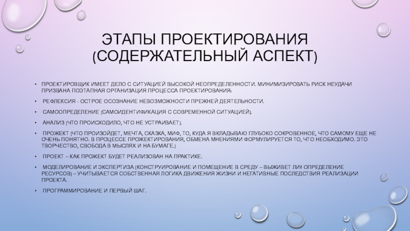 Проектировщик имеет дело с ситуацией высокой неопределенности. Минимизировать