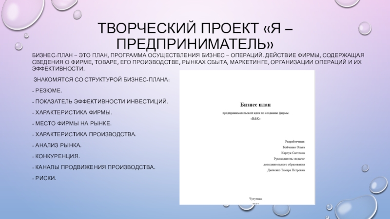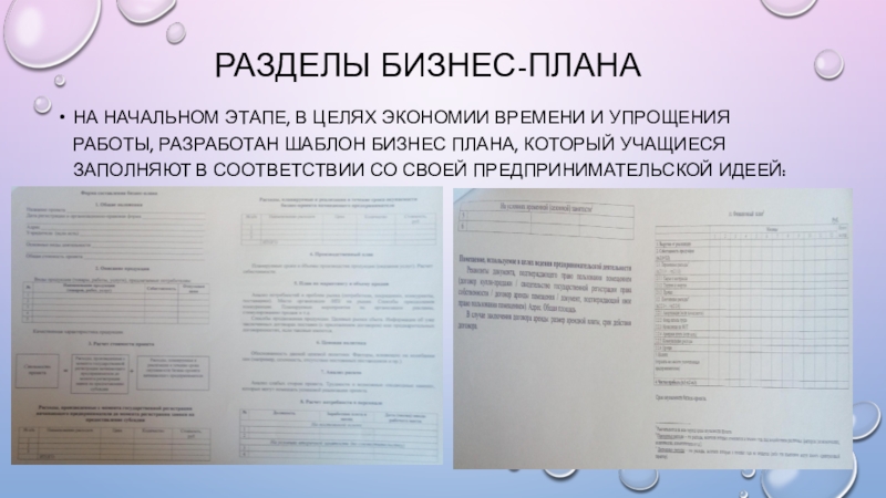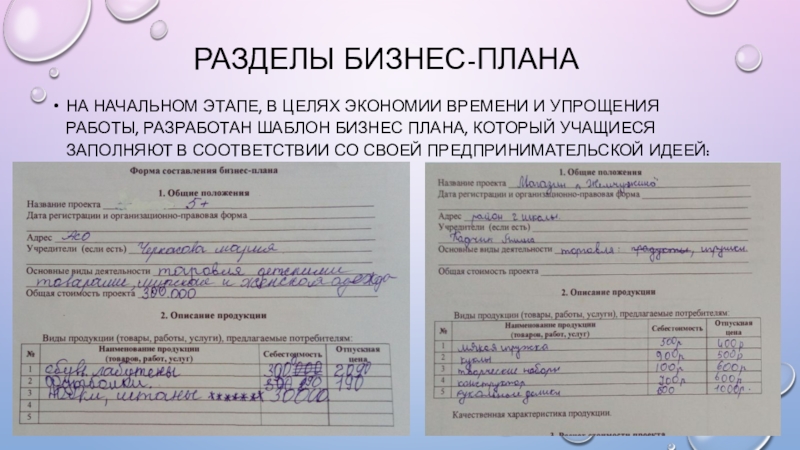 работы, разработан шаблон бизнес плана, который учащиеся заполняют в соответствии со своей предпринимательской идеей: