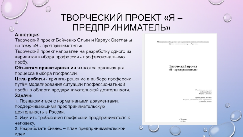 Творческий проект Бойченко Ольги и Карпук Светланы