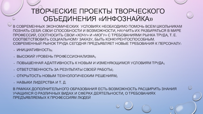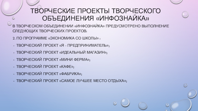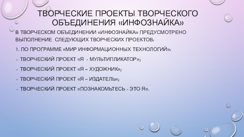 Слайд 21Творческие проекты Творческого объединения «Инфознайка»