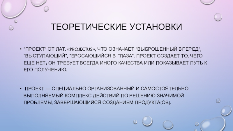 "Проект" от лат. «projectus», что означает "выброшенный вперед", "выступающий", "бросающийся