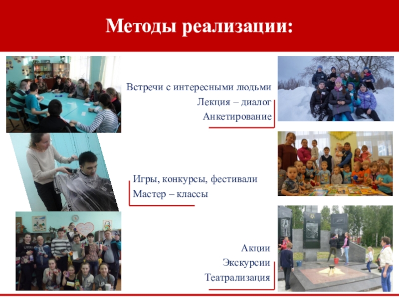 расширение возможностей для творческого развития, реализации интересов занятости ребенка организованными формами досуга