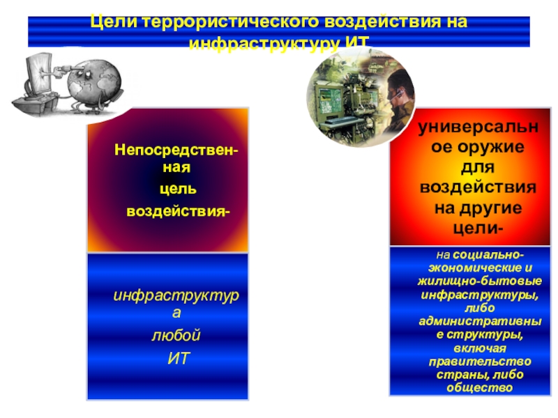 Слайд 5Цели террористического воздействия на инфраструктуру ИТ