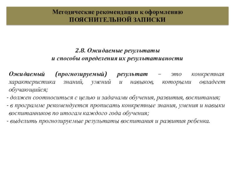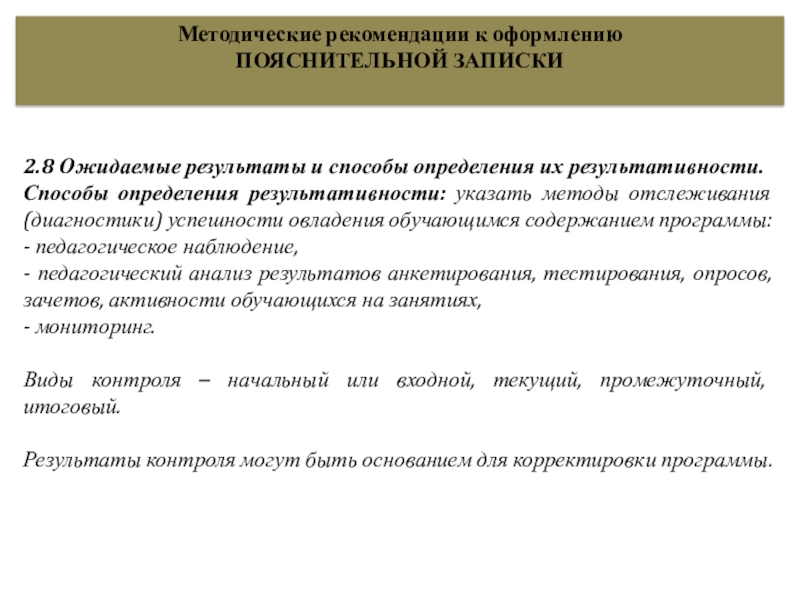 Слайд 212.8 Ожидаемые результаты и способы определения их результативности.