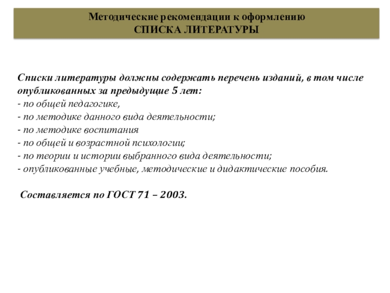 Списки литературы должны содержать перечень изданий,