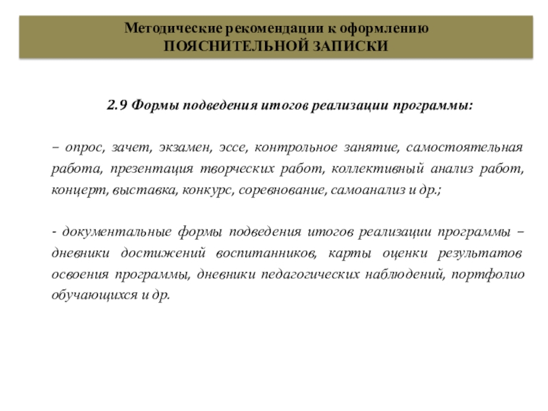 2.9 Формы подведения итогов реализации программы: