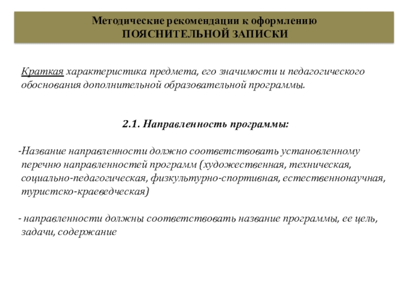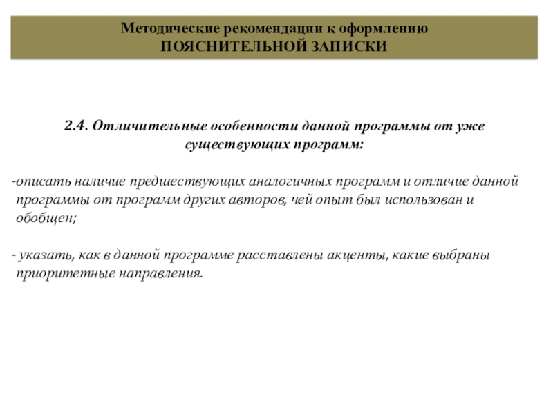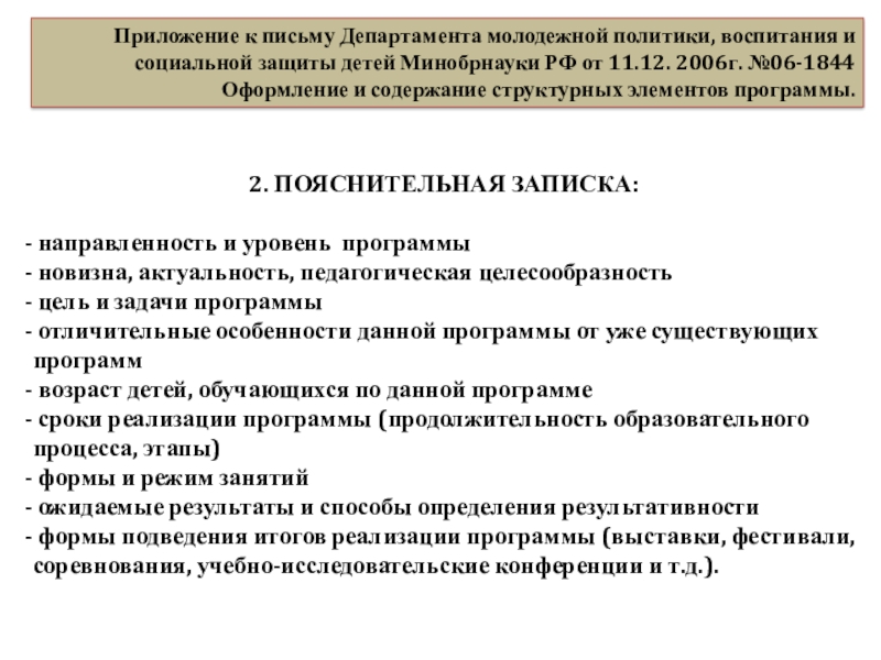 К оформлению и содержанию структурных элементов программы.