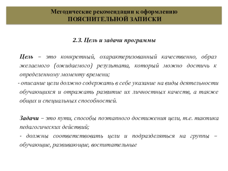 цель и задачи программы