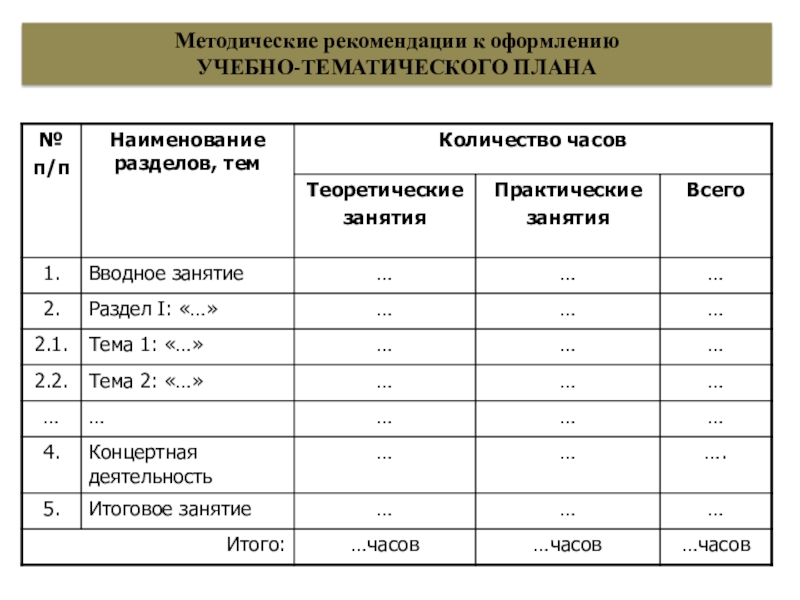 - Указать название темы (нумерация, количество и название разделов и тем должно совпадать с перечисленными разделами и темами УТП).