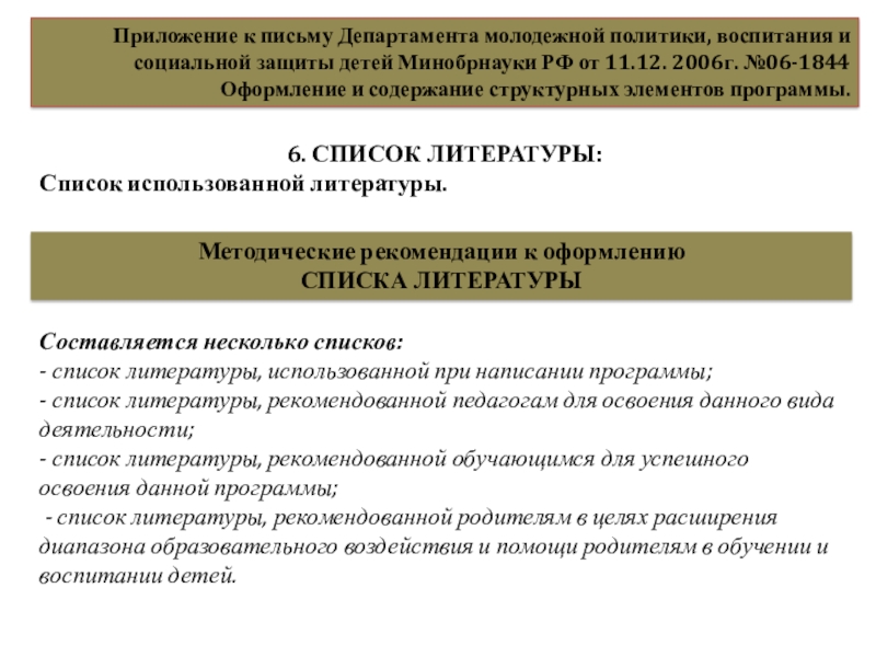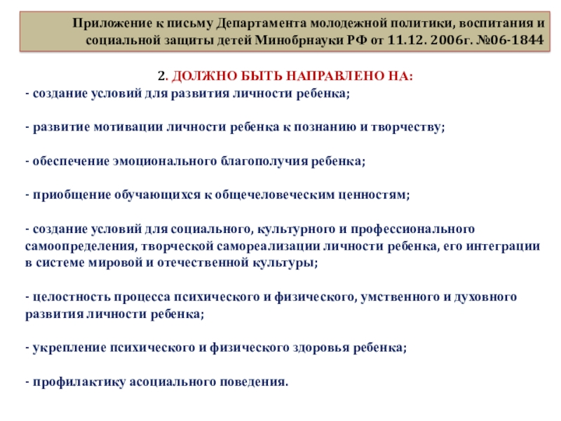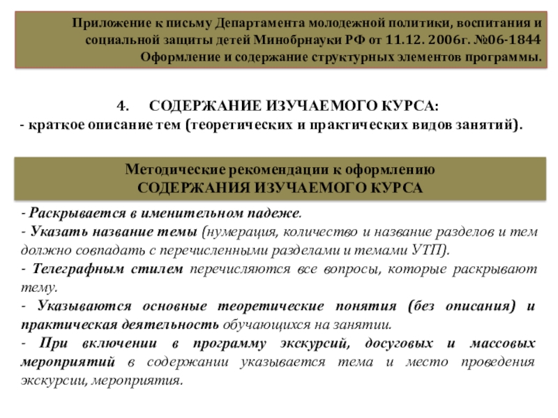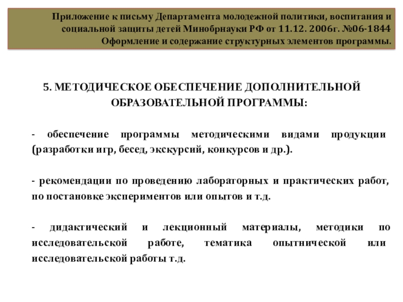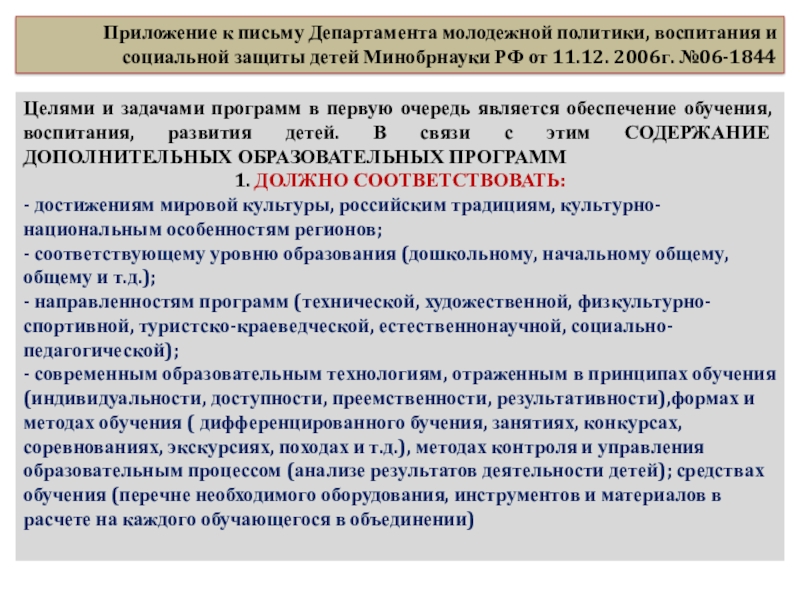 Минобрнауки РФ от 11.12. 2006г. №06-1844