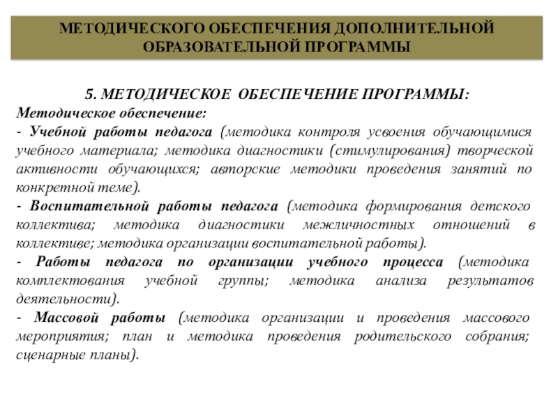 Слайд 28МЕТОДИЧЕСКОГО ОБЕСПЕЧЕНИЯ ДОПОЛНИТЕЛЬНОЙ ОБРАЗОВАТЕЛЬНОЙ ПРОГРАММЫ