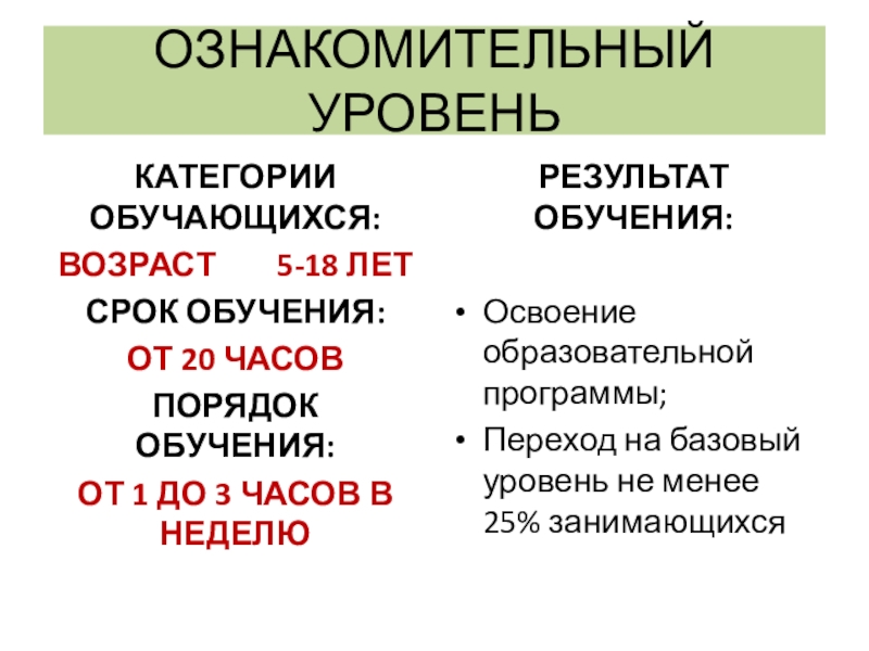 Слайд 9ОЗНАКОМИТЕЛЬНЫЙ УРОВЕНЬ