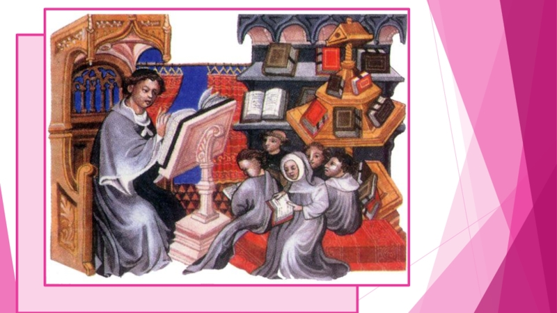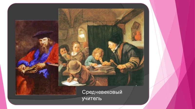 Средневековая школа – это начальное образование при монастыре. Учитель – некто приближенный к Богу, часть неземного мира, монахи, священники. Учителей боялись, уважали, чтили.