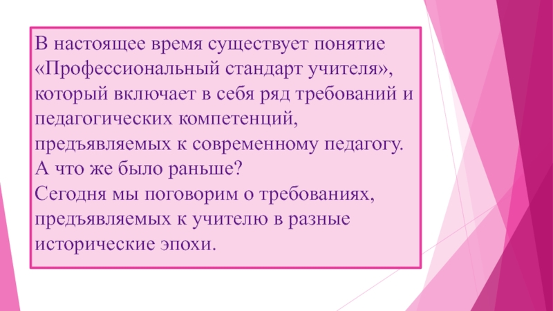 Сегодня мы поговорим о требованиях, предъявляемых к учителю в разные исторические эпохи.