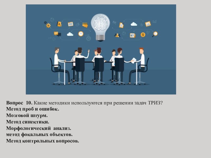 Слайд 11Вопрос 10. Какие методики используются при решении задач ТРИЗ?