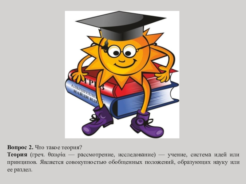учение, система идей или принципов. Является совокупностью обобщенных положений, образующих науку или ее раздел.