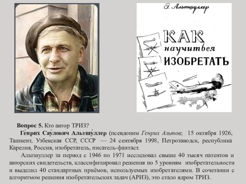Слайд 6 Вопрос 5. Кто автор ТРИЗ?